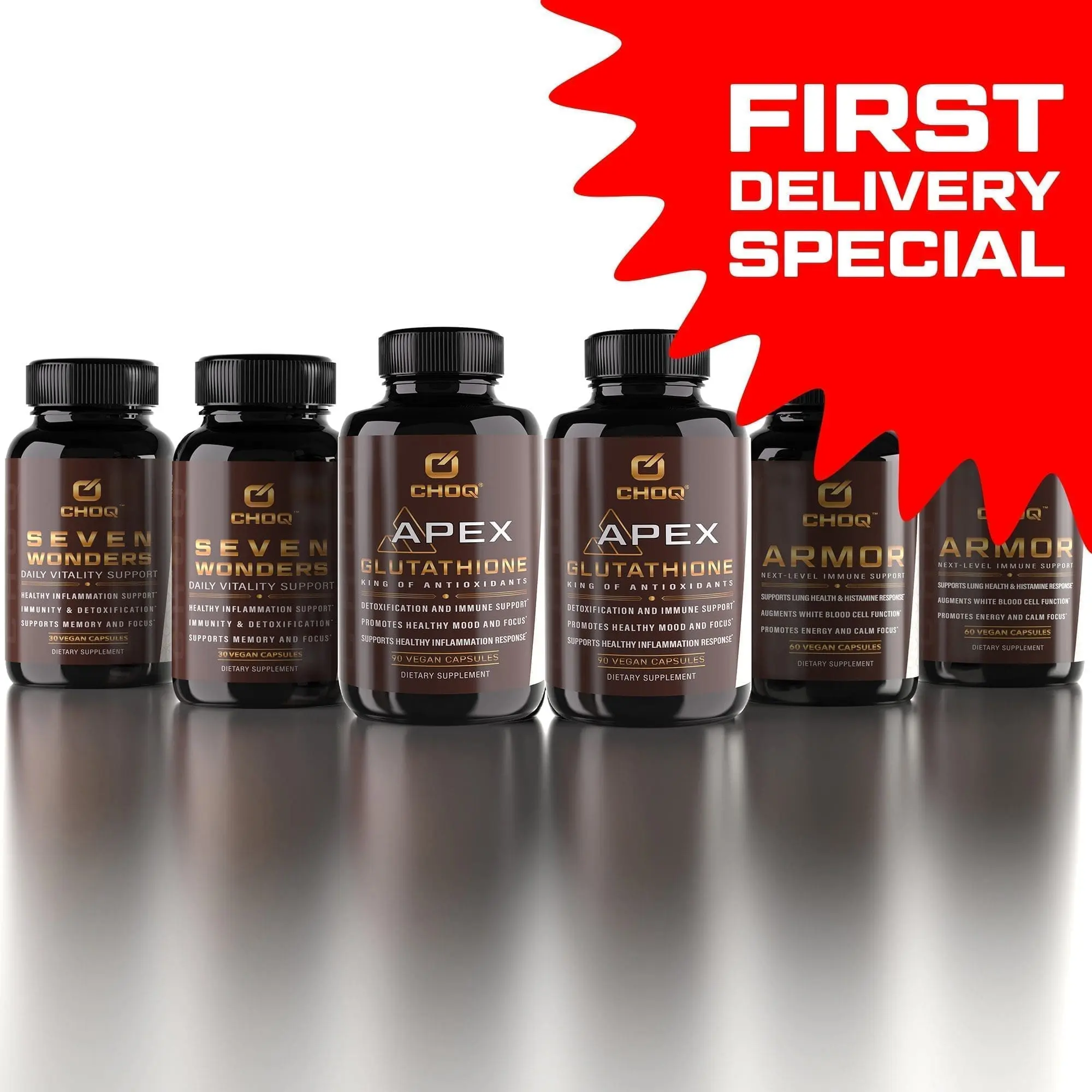 Apex Glutathione was created from the beginning to be the perfect immune and detox-supporting complement to Armor, as glutathione is essential for optimal immune vitality and healthy inflammation response. Seven Wonders is made of a world-class blend of organic mushrooms, including Reishi, Cordyceps, Chaga, and Lion’s Mane, making it an immune and antioxidant powerhouse.